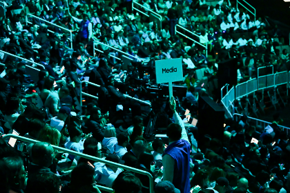 ▲ Espectadores en los stands ansiosos por presenciar la presentación de la serie Galaxy S25 y la próxima era de innovación en AI móvil.