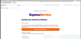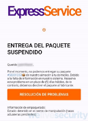 ExpressService: En este caso, los actores maliciosos utilizan el nombre de una supuesta empresa de mensajería llamada “Express Service”, y apelan al sentido de la urgencia, con una supuesta entrega de paquete que se encuentra suspendida. Al hacer clic en el botón para supuestamente resolver el problema, el usuario es llevado a un formulario apócrifo donde los datos que ingresen serán solo para los cibercriminales.