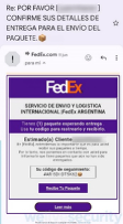 FedEx: Otro ejemplo es el que suplanta la identidad de FedEx, pidiéndole a la posible víctima que confirme sus datos para que el supuesto paquete sea enviado.