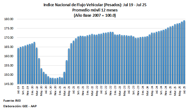 Morisaki precisó que el resultado responde tanto al aumento del tránsito de vehículos pesados, que creció 4.6%, como al de los vehículos ligeros, que lo hizo en 3.8%. En el periodo comprendido entre agosto de 2024 y julio de 2025, el índice acumulado aumentó en 3.5% frente al mismo lapso del año anterior.
