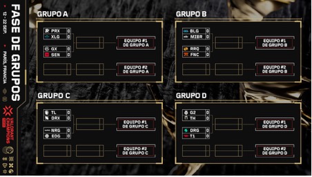 La fase de grupos tendrá 16 equipos repartidos en cuatro grupos; cada grupo tendrá un equipo de las cuatro ligas internacionales de VALORANT. En esta fase, los equipos lucharán en un formato de eliminación doble y dos equipos de cada grupo avanzarán a la siguiente fase.