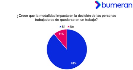 El 89% de los especialistas cree que la modalidad de trabajo influye a la hora de buscar nuevos talentos, frente al 11% que no lo cree así.